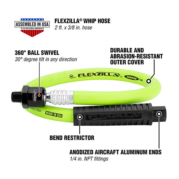 3/8" WHIP HOSE, 24", 1/4" NPT